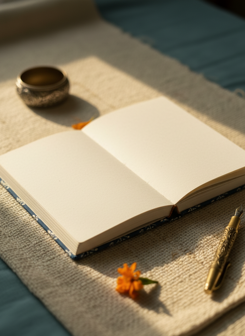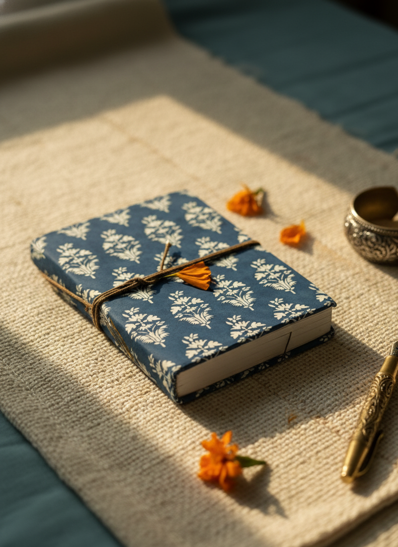 The Noor journal embodies the gentle radiance of light meeting calm — serene, pure, and inspiring. Handcrafted in Rajasthan, it offers a refined space for reflection, creativity, and everyday expression. Graceful and minimal, Noor brightens your thoughts with quiet clarity and purpose.