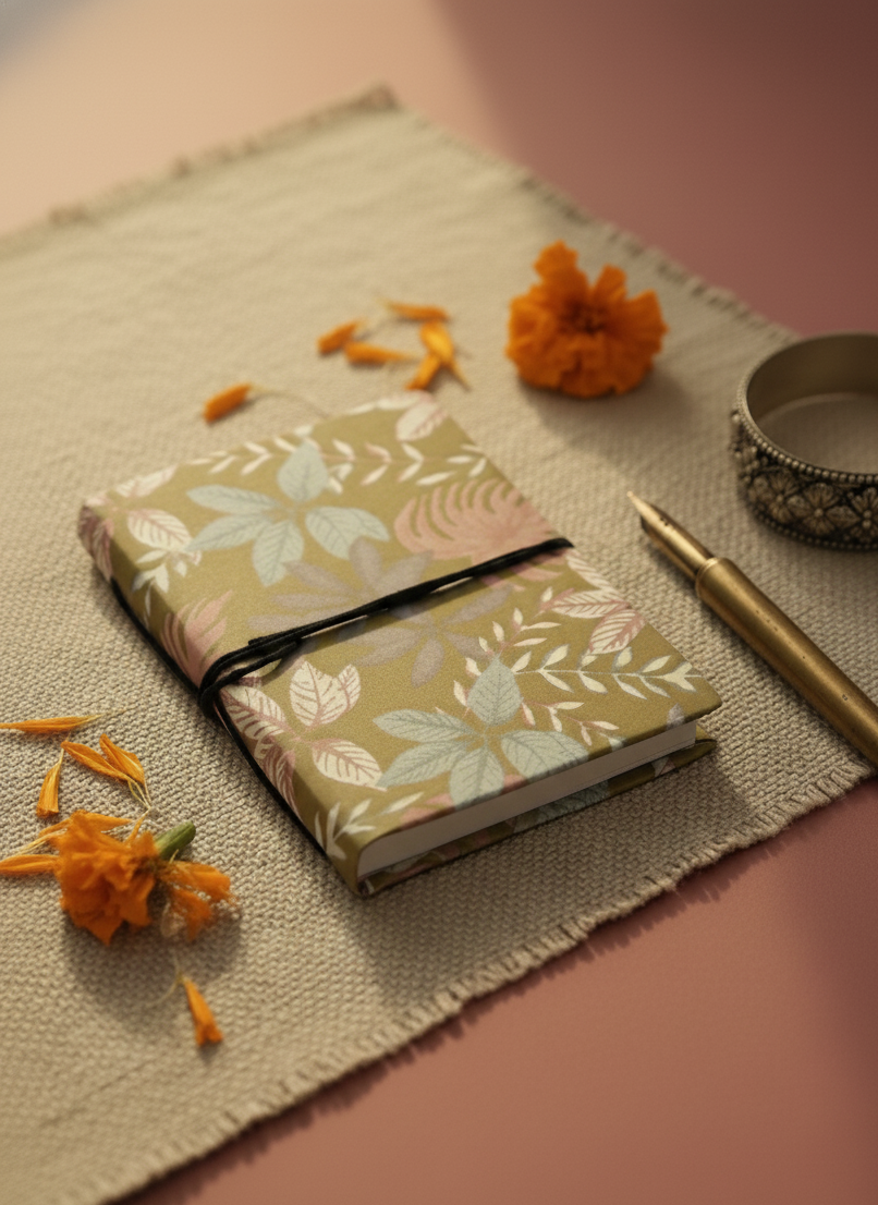 The Roshni journal is inspired by the warm glow of light — a symbol of hope, clarity, and new beginnings. Handcrafted in Rajasthan, it radiates timeless charm while offering a graceful space for your thoughts, plans, and reflections. Bright yet soothing, Roshni turns everyday writing into a moment of quiet illumination.